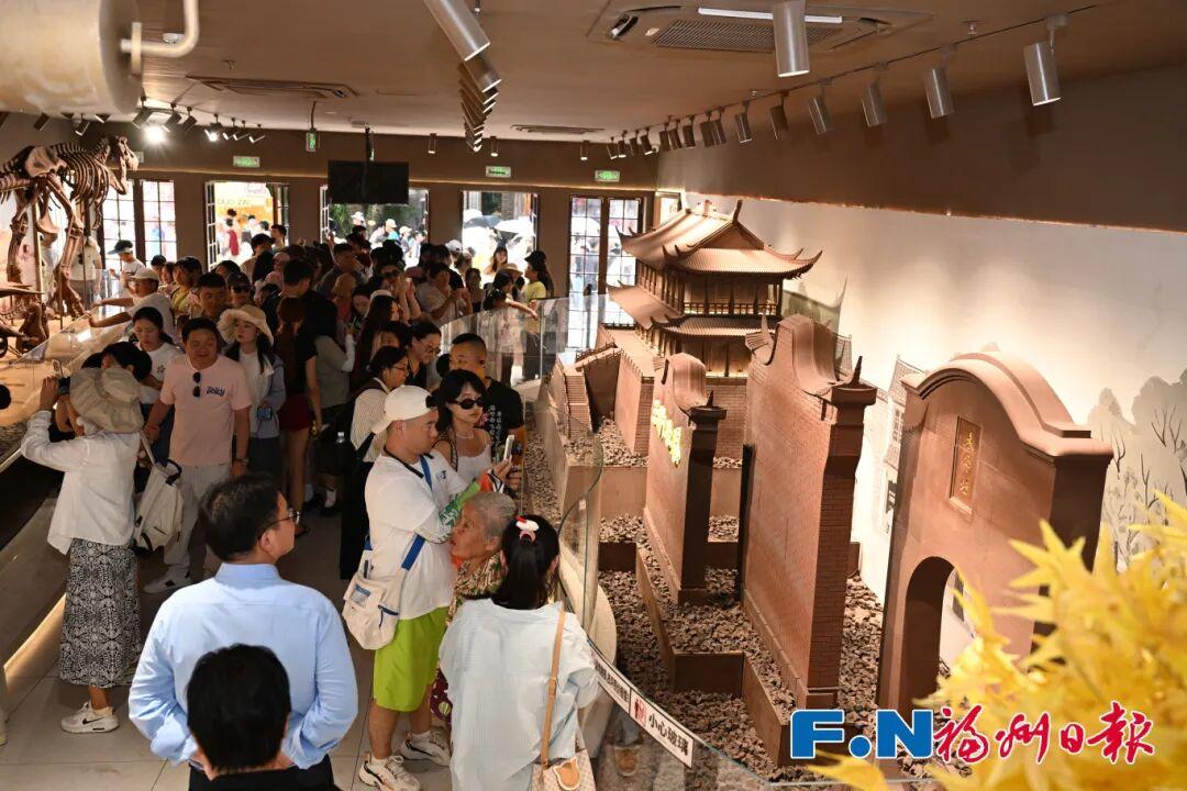 “看,这不就是我们刚走进来的那条街吗?”不少游客在复刻三坊七巷、南后街等福州地标的巧克力展品前发出惊叹。店长陈莉玫在人群中穿梭忙碌:“虽然实行了限流,但每天仍能接待2万名左右的游客,现场的手工体验区从早到晚都排着长队。”