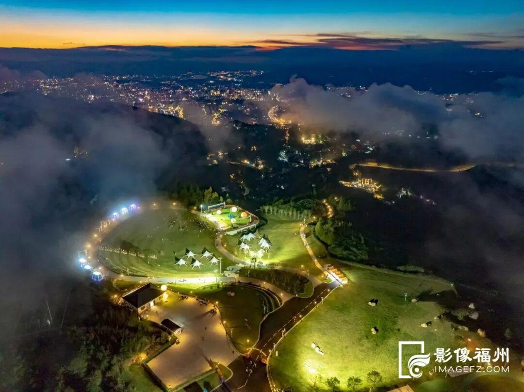 ▲华灯初上时,位于鼓岭柱里景区的柱岗顶营区亮起了灯光 陈暖/摄