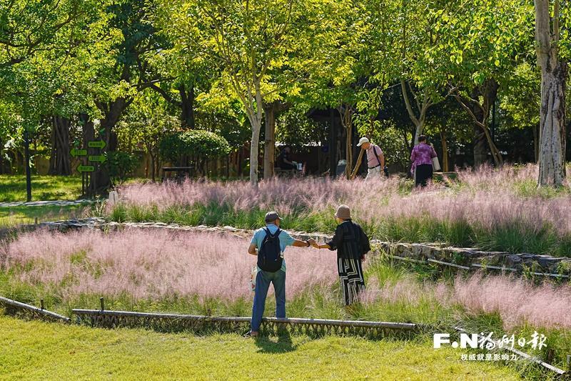 国庆中秋假期,福州赤桥公园的粉黛乱子草进入盛花期,成片粉色花海吸引众多游客前来打卡。然而,这片美景却因部分游客的不文明行为而遭受破坏。