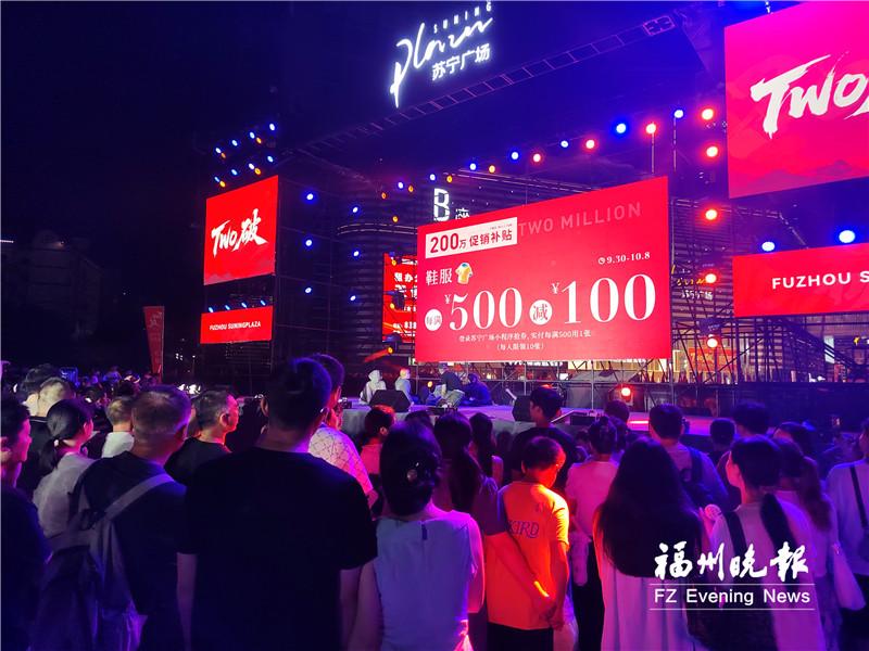 长假苏宁广场举办活动,向消费者发放优惠券。