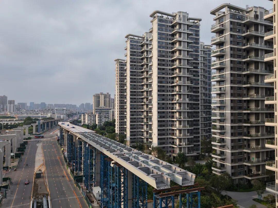 截至目前,兴屿路至安铺路左幅主线桥上部结构施工已完成超六成,为年底实现兴屿路至鹤林路F匝道左幅主线桥贯通奠定了坚实基础。