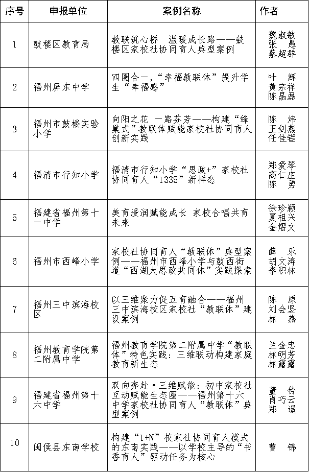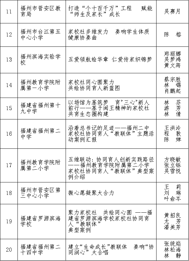 2025年福州家校社协同育人“教联体”典型案例