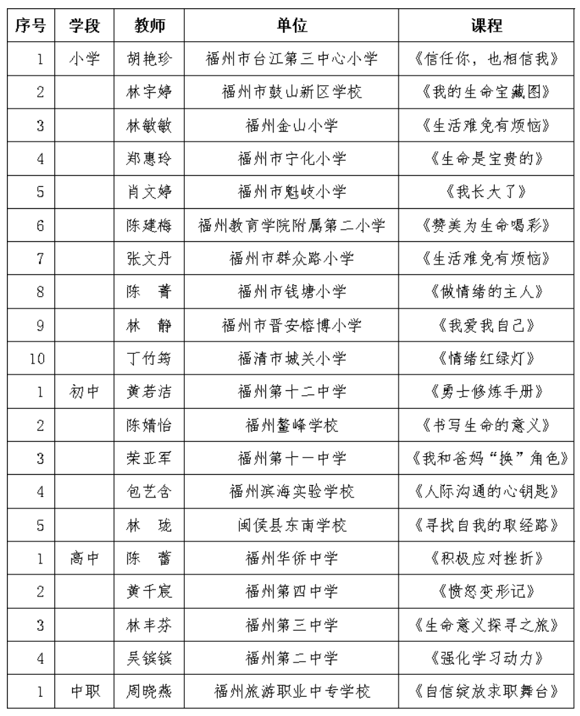 2025年福州市中小学心理健康教育精品课名单