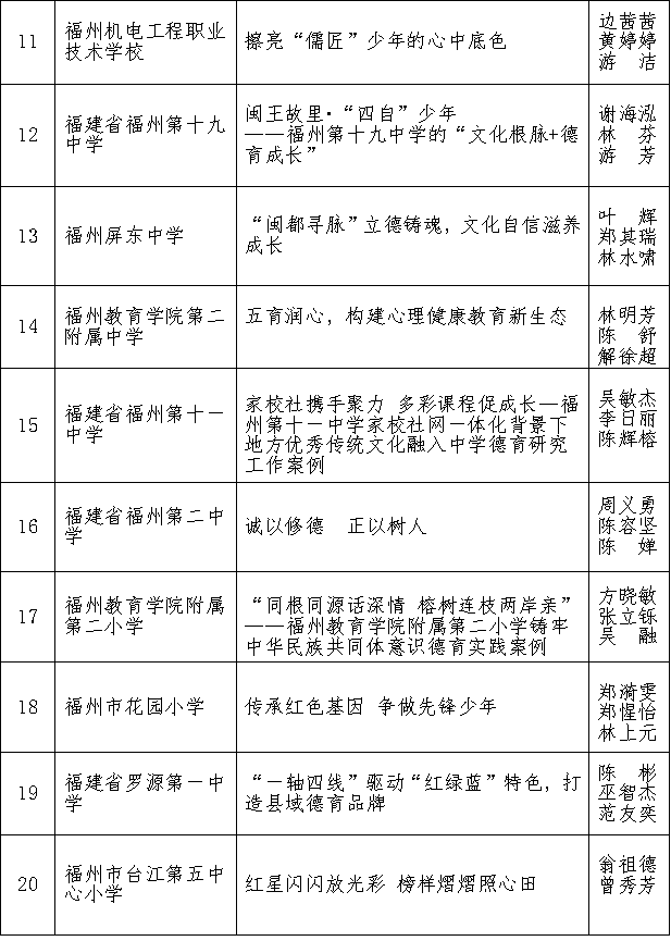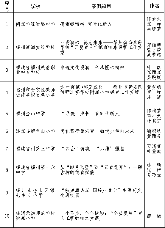 近日,福州市教育局发布关于公布2025年福州市“一校一案”落实 《中小学德育工作指南》 典型案例等五项特色项目的通知,多校上榜。具体名单如下: