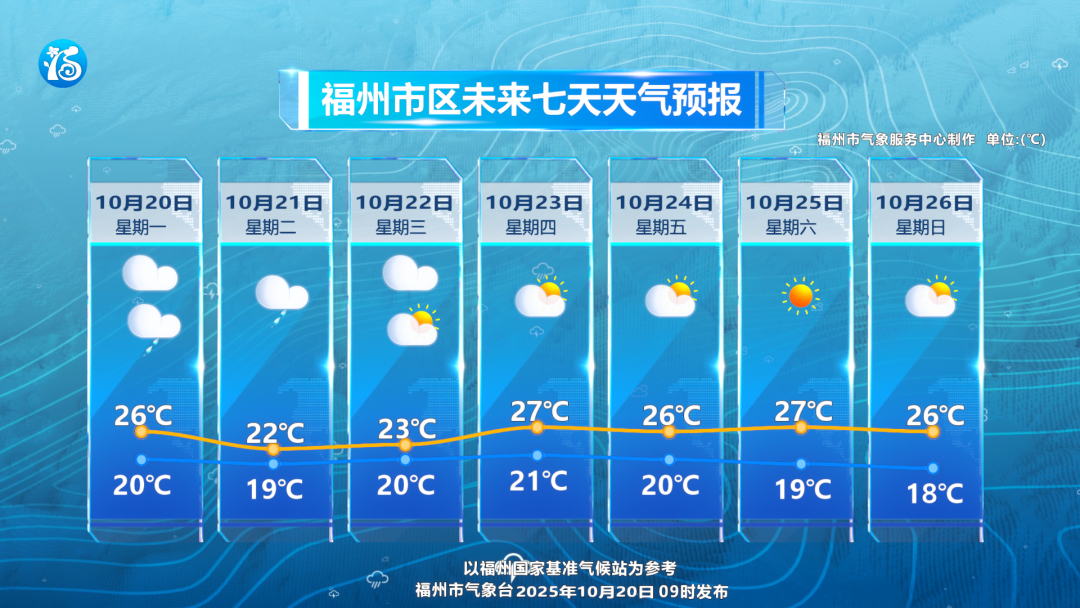 据福州气象最新消息,今明两天有阵雨,出行请带好雨具,其余时段以多云到阴为主。