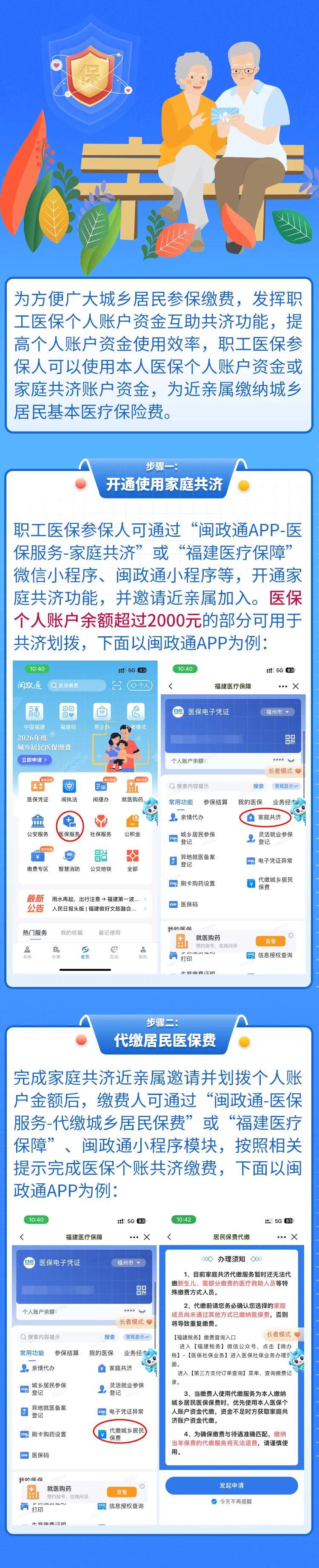 家庭共济账户可为近亲属代缴城乡居民医保费!