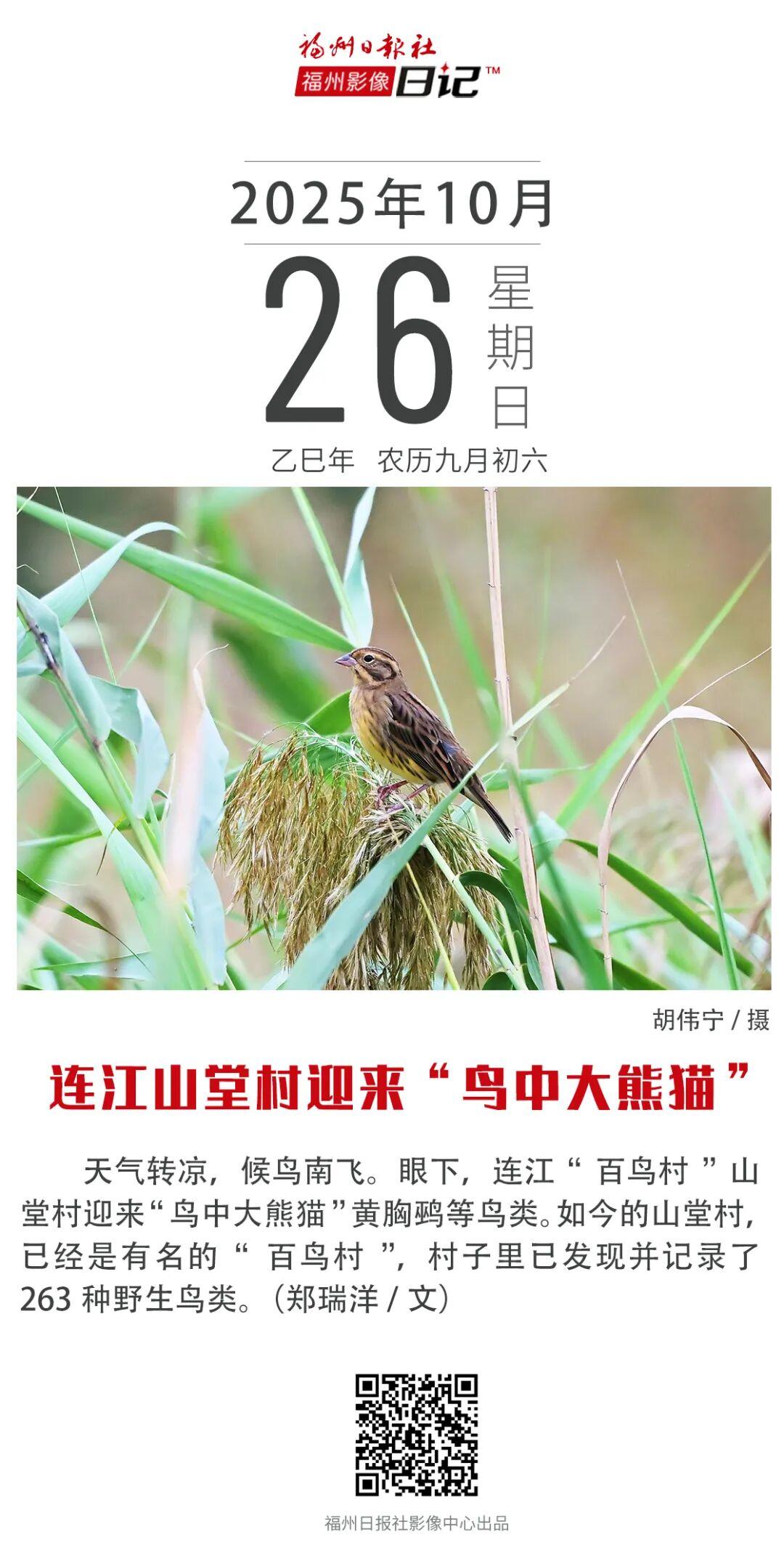 有摄影爱好者拍到了有着“鸟中大熊猫”之称的黄胸鹀。黄胸鹀又名禾花雀,体型小巧玲珑,体长约15厘米,最具标志性特征是胸腹部有亮黄色的羽毛。2021年,我国将黄胸鹀升级为国家一级重点保护野生动物。
