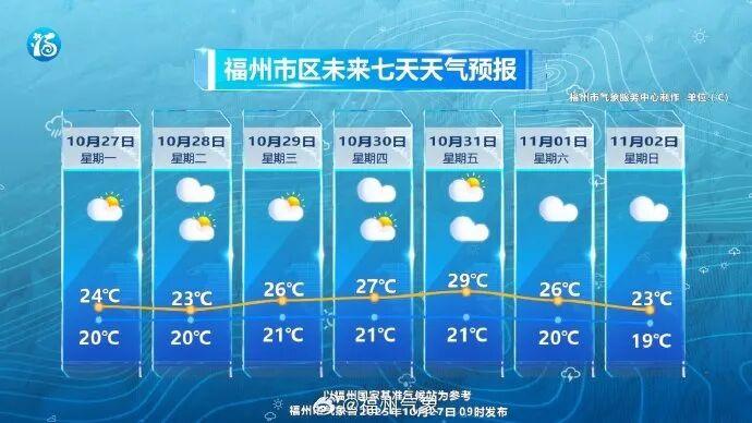 据福州市气象部门消息,在地面冷空气影响下,福州各地云量多,局地有短暂的小雨。29日至31日,冷空气影响减弱,福州各地气温回升,最高温将达到29℃。但到了11月1日,又有新一波冷空气影响,气温再次下降,最低温或跌破20℃。