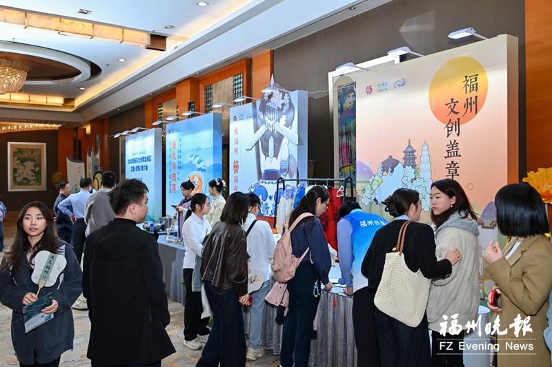 “四市一区”还带来文旅图片展和特色文创产品,福州特色团扇文创印章、妈祖主题文创、三坊七巷爱心树玩偶等,深受人们喜爱。
