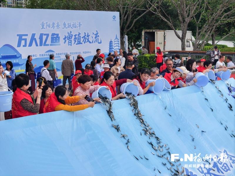 29日下午,“重阳孝亲 鱼跃福泽”万人亿鱼增殖放流活动在福州花海公园举办,共放流70万尾鱼苗,助力闽江流域水生生物多样性恢复,改善水域生态环境。