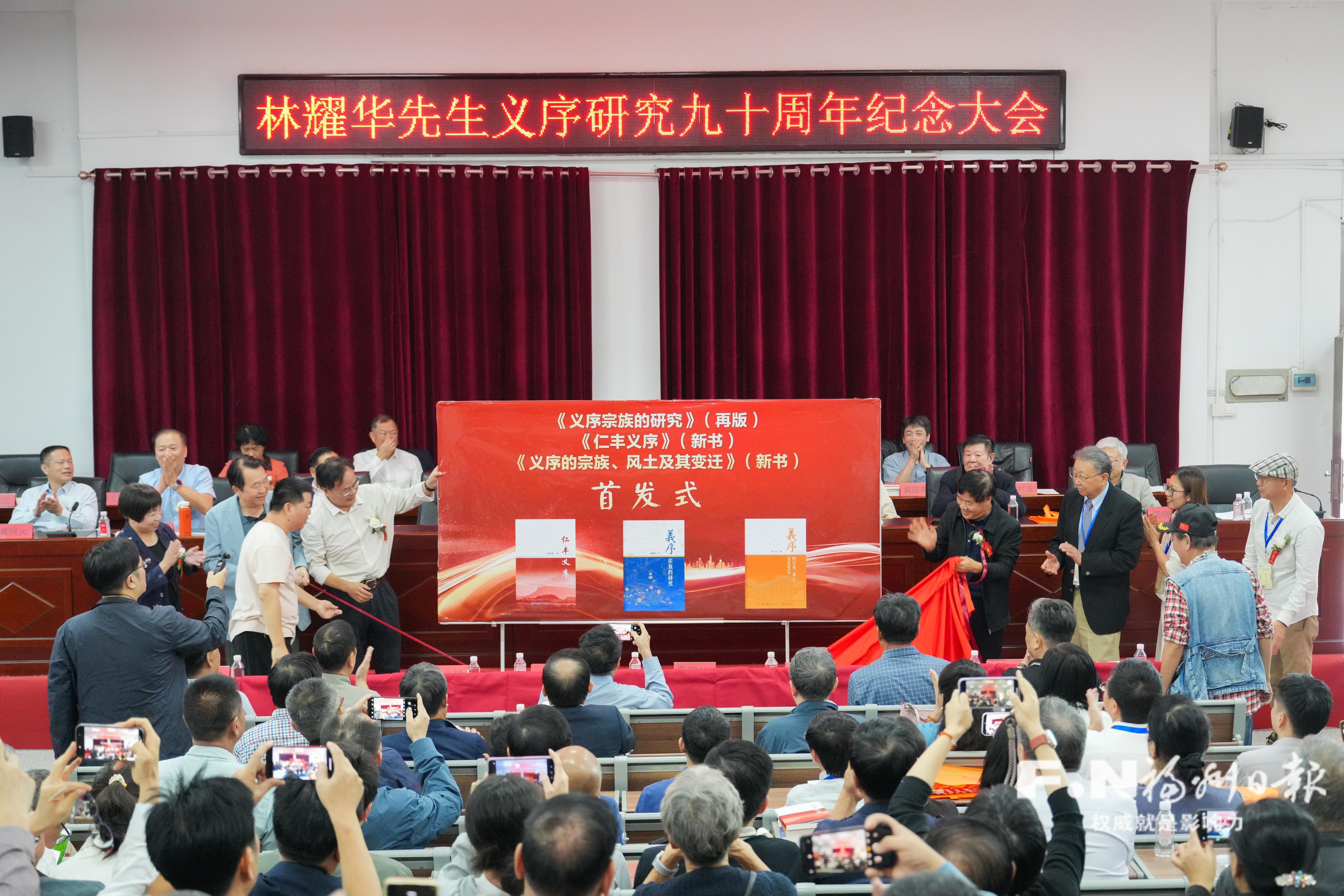 纪念大会上,三本新书首发。记者 包华 摄