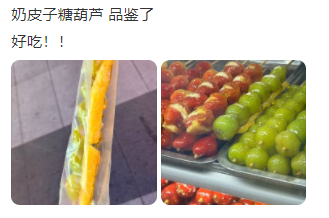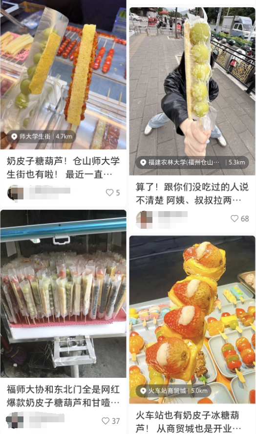 今年秋冬,“跨界美食”奶皮子糖葫芦火成了“顶流”,它把奶皮子和山楂融合,再裹上一层脆糖壳,口感层次丰富,圈粉了大批年轻人。不少福州网友晒出了奶皮子糖葫芦。