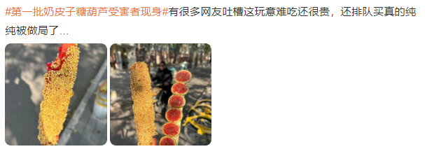 对于奶皮子糖葫芦的走红,网上的评论褒贬不一。不少网友表示,大概又被营销“做局”了。