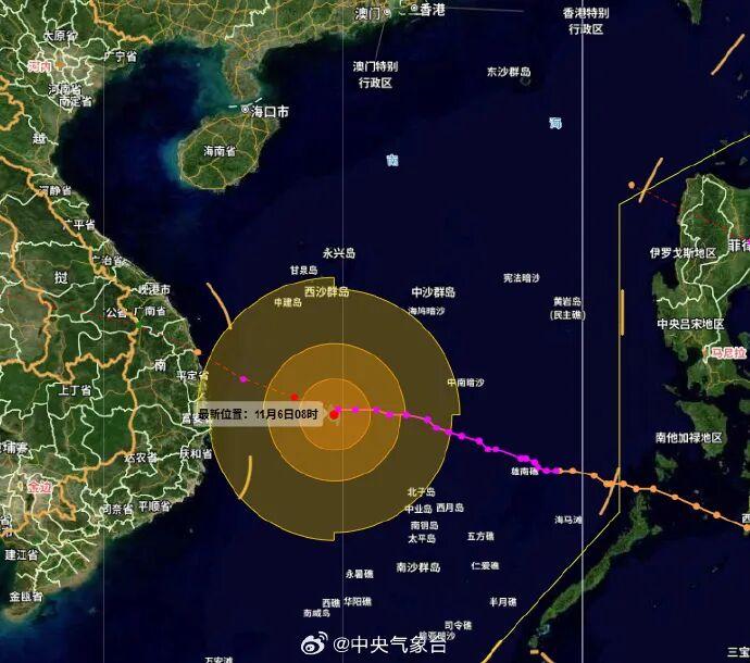 据中央气象台消息,今年第25号台风“海鸥”(超强台风级)的中心,今早9时位于越南嘉莱省归仁市东偏南方向约305公里的南海西南部海面,中心附近最大风力16级(55米/秒),中心最低气压为930百帕,将以每小时20公里~25公里的速度向西偏北方向移动。