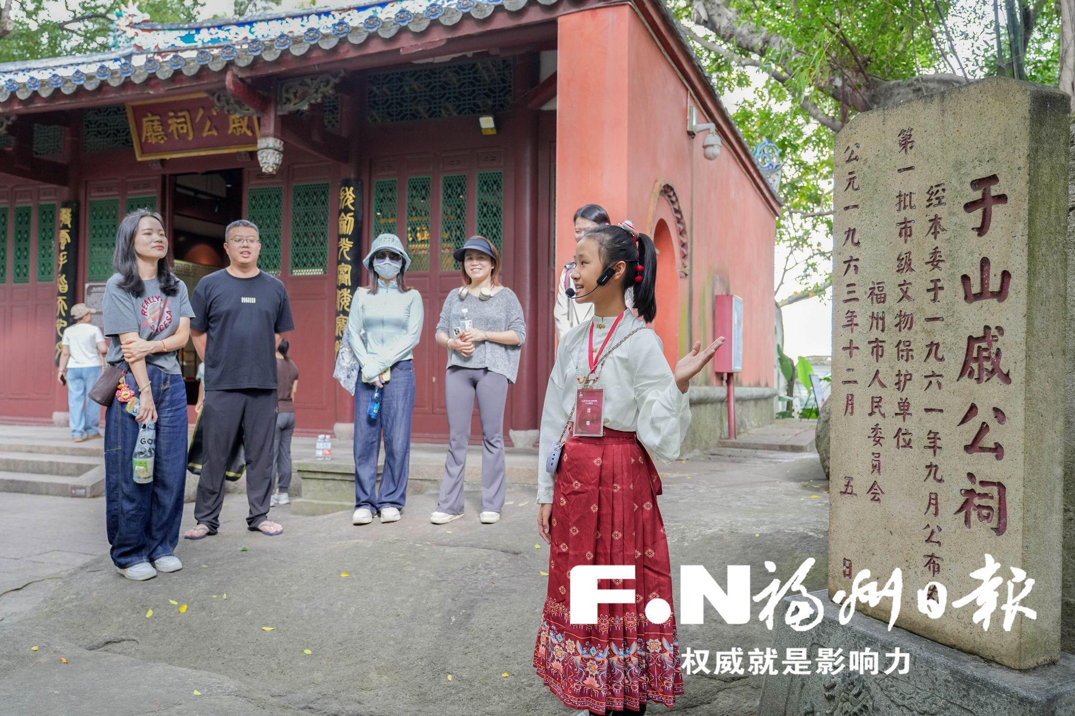 仪式结束后,10名少年便奔赴戚公祠、大士殿、状元峰等景点开始讲解。在大士殿,小讲解员罗明骏动情回顾了这里作为辛亥革命福州前敌总指挥部的历史,其稚嫩而真挚的解说深深打动了在场游客。“这些历史由童声讲出来,别有一番感染力,更能感受到那份赤子之心。”一位游客感慨道。