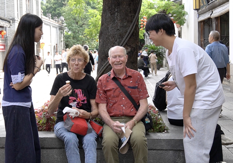 采访逛三坊七巷的外国友人。李睿鑫 摄
