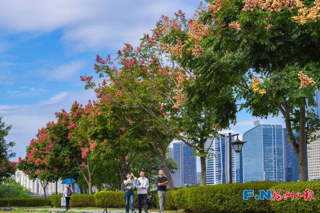绿意之外,11月的福州更悄然铺展出一场色彩的盛宴:西湖公园里秋菊绽放出斑斓的画卷,闽江公园北园栾树缀满温柔的粉红,乌龙江湿地中橘红色的水杉与飘香的桂花交织,赤桥公园里粉黛草与异木棉晕染出梦幻的粉霞……整座城市仿佛一只被打翻的调色盘,在绿的底色上,点缀出处处皆景的诗意。