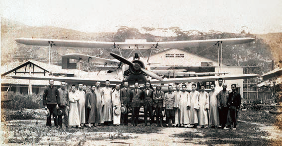 飞机制造处员工在自己建造的飞机前留影。(来源:中国船政文化博物馆)