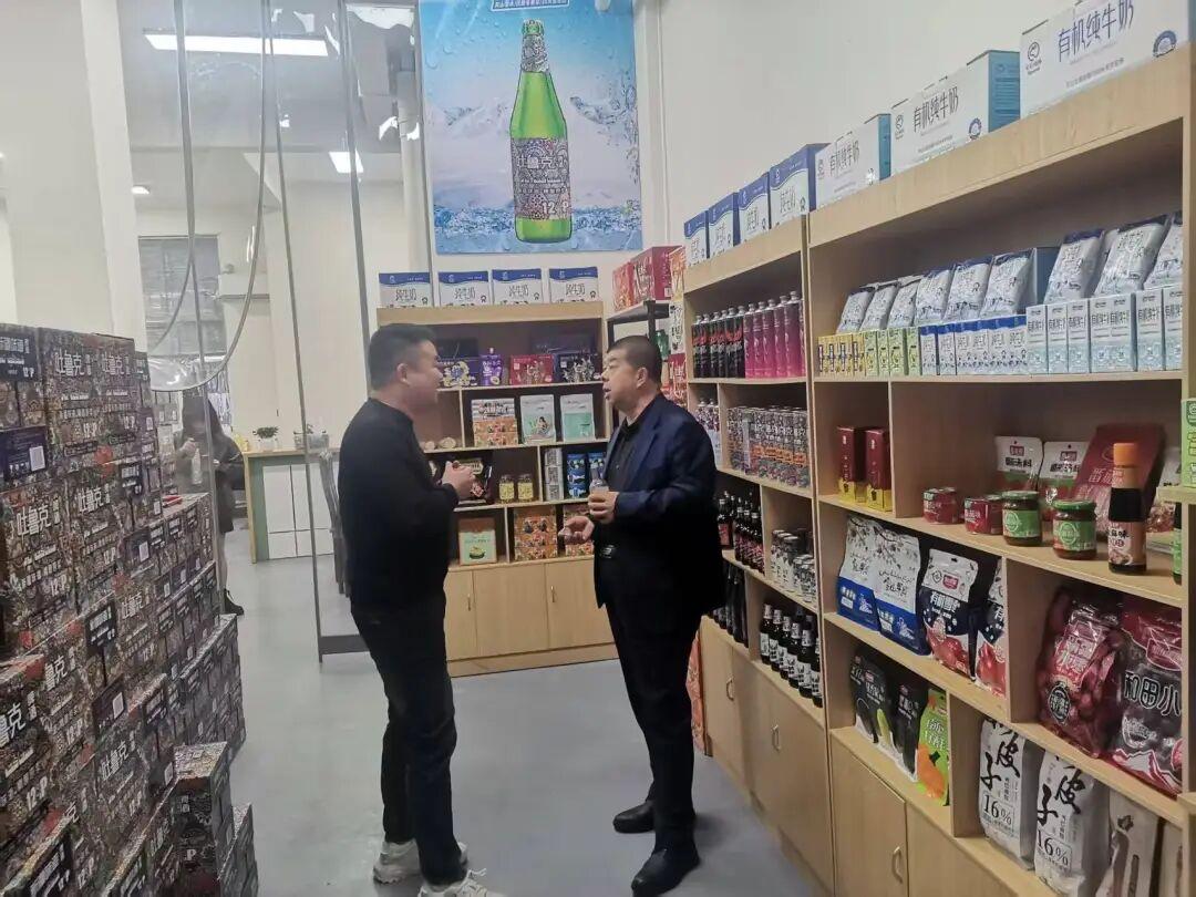 依照《2025年奇台县供销合作社联合社外销平台建设项目实施方案》,考察组分别从经销农产品种类、销售情况、销售额、店面打造等方面对外销平台进行验收,并与经营方、消费者进行交流。
