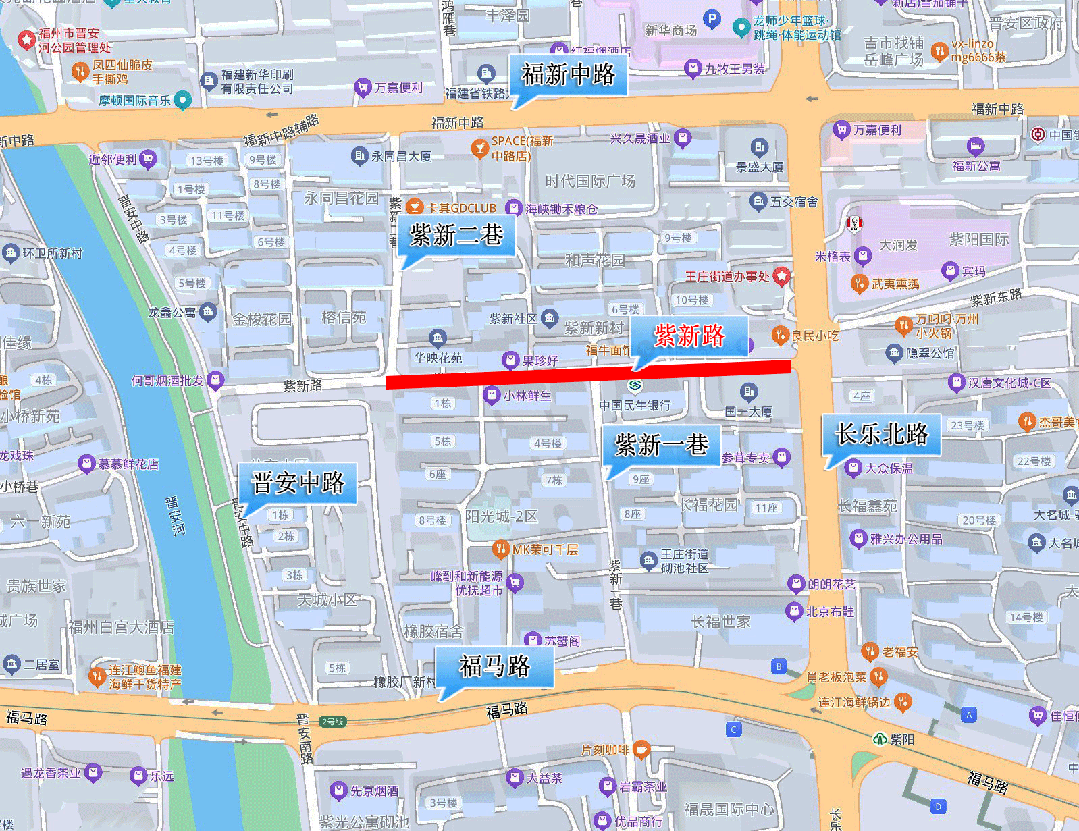 二、从2025年11月17日至施工结束(工期约1.5个月),根据施工进展,视情对紫新路(西起紫新二巷口,东至长乐北路口)实行临时交通管制,禁止机动车通行。