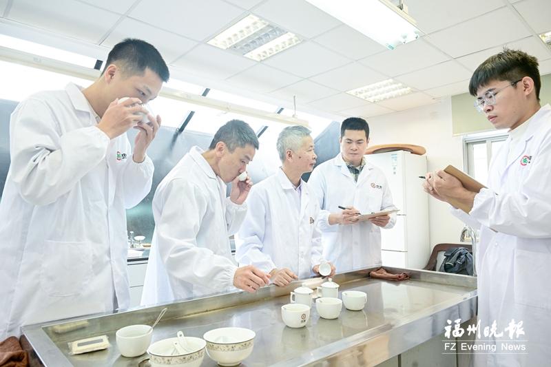 在“福茶”产业工匠学院,专家指导学员品鉴茉莉花茶。