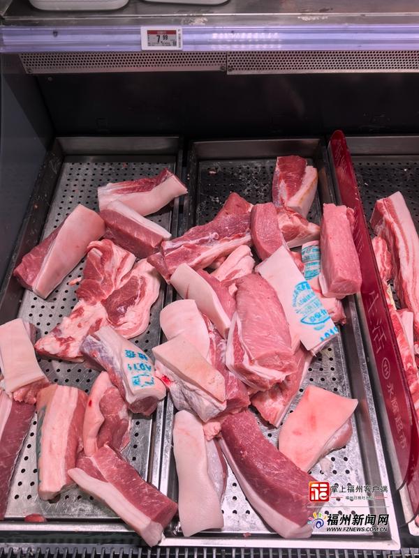 “鲜前腿肉15.98元/公斤、鲜筒骨19.8元/公斤、鲜五花肉31.8元/公斤、排骨(前排)37.8元/公斤。”在永辉超市群众店,记者看到不少市民正在购买猪肉。“猪腿肉、筒骨一公斤还不到20元。”现场市民陈依姆直呼:“今年吃猪肉便宜了”。