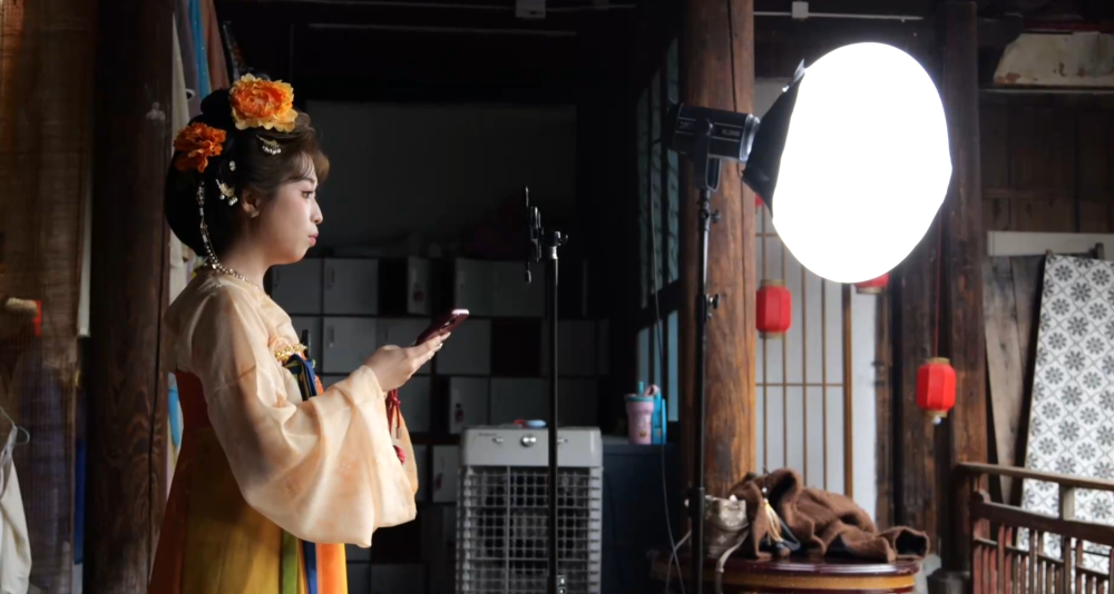在福州市三坊七巷历史文化街区的古厝拾光国潮旅拍店内,年轻姑娘们换上精心挑选的汉服,端坐在化妆镜前,在化妆师的巧手下,一张张略显青涩的面孔逐渐显露出跨越时空的东方韵味。