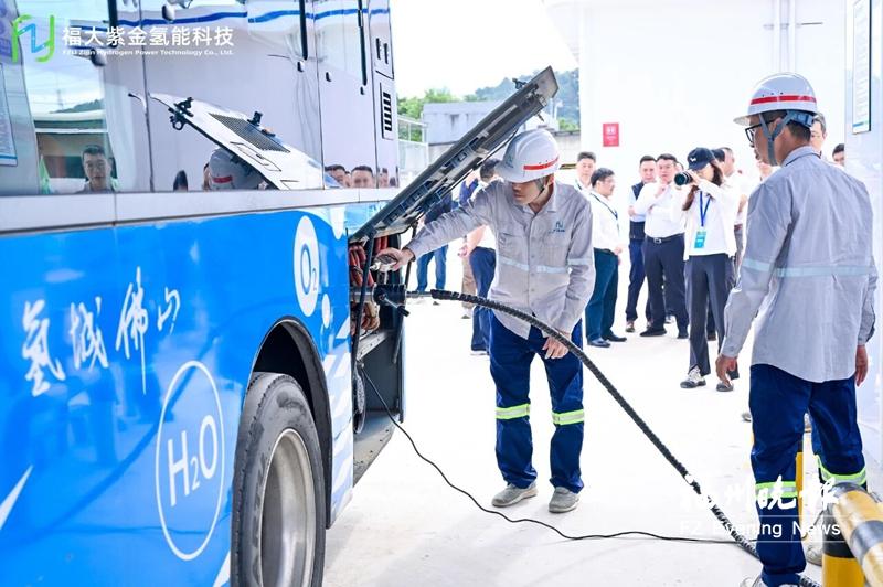 近日,一辆氢燃料电池巴士驶入位于佛山南海的氨制氢加氢一体站,短短几分钟便完成氢气加注,电池仪表盘显示电量满格,加满氢后它的最大续航里程可达近400公里。