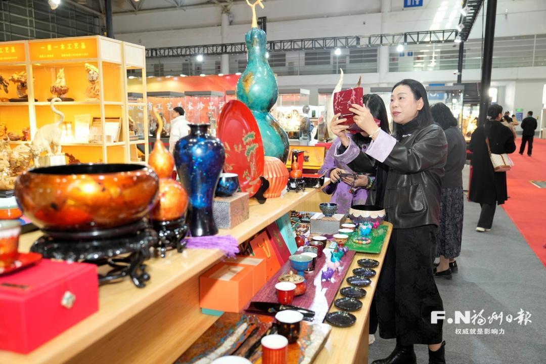 工艺美术行业的精彩不仅限于此。当天,第四届福品博览会的重要子展——第三届中国漆艺博览会暨工艺生活好物展在福州海峡国际会展中心举办。大会汇聚海内外200余家参展商,覆盖国内近20个省份及多个国家和地区,集中呈现脱胎漆器、雕漆、陶瓷、剪纸等多元工艺门类,搭建起工艺美术领域交流与产业联动的高水平平台。