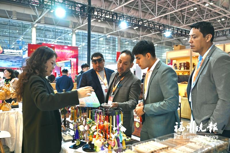 展会首日吸引了大量市民游客和行业从业者。“福州大漆的品种比我想象的还要丰富,许多企业开发的产品值得推广。”一名来自秘鲁的客商说道。