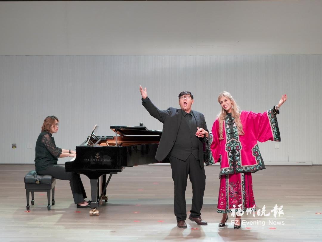 音乐会曲目多元丰富,串联起东西方音乐风景。卡拉率先登台,以《索隆戈》传递地中海风情,又献唱《莱茵河的传说》《哈巴涅拉舞曲》等西方经典,让观众沉醉其中。福建艺术职业学院青年教师同样亮眼,任德民以《圣洁的阿依达》赢得喝彩,王宇凡用《越人歌》诠释东方浪漫,邓娴竞的《一杯美酒》则带来浓郁的新疆风情。