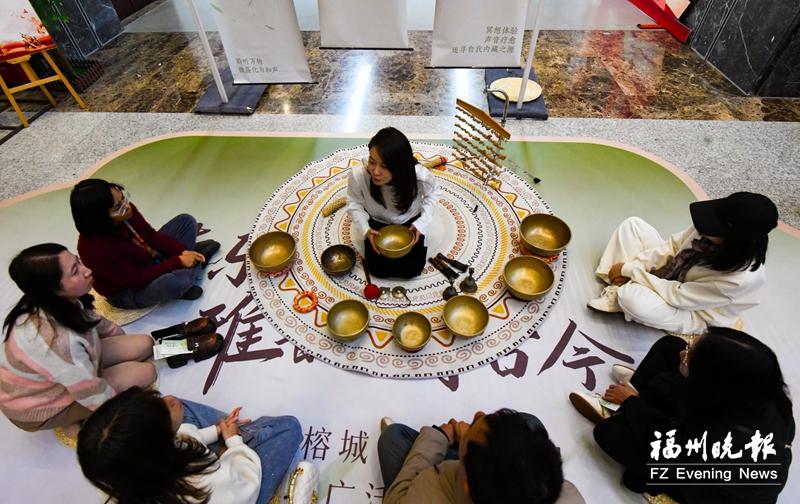 颂钵体验区则是一番静谧景象,疗愈师敲击颂钵发出低频声波,市民闭目静坐,在钵音与茶香中舒缓压力。