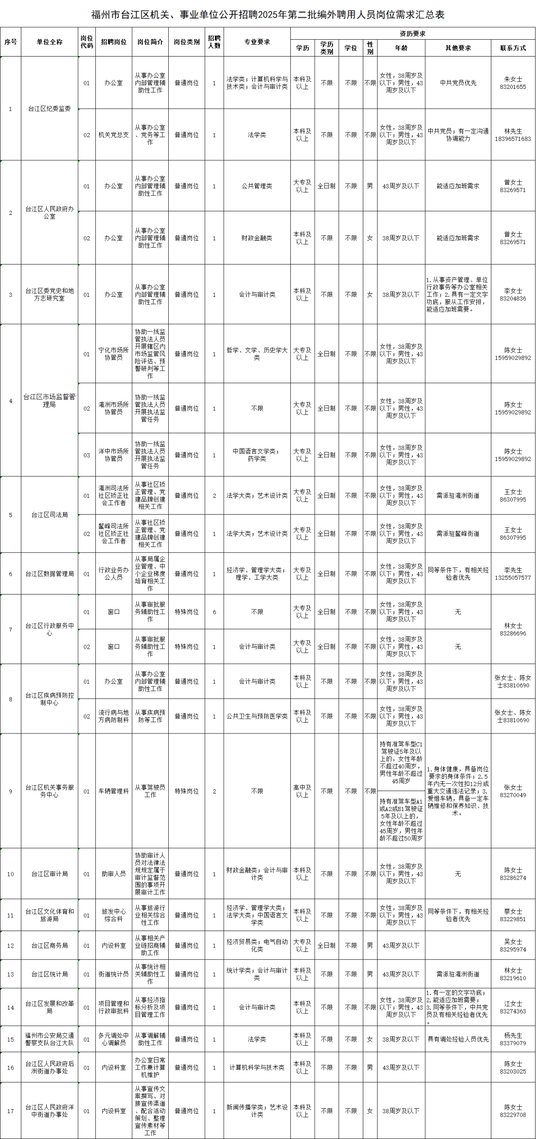 福州市台江区机关、事业单位公开招聘2025年第二批编外聘用人员公告