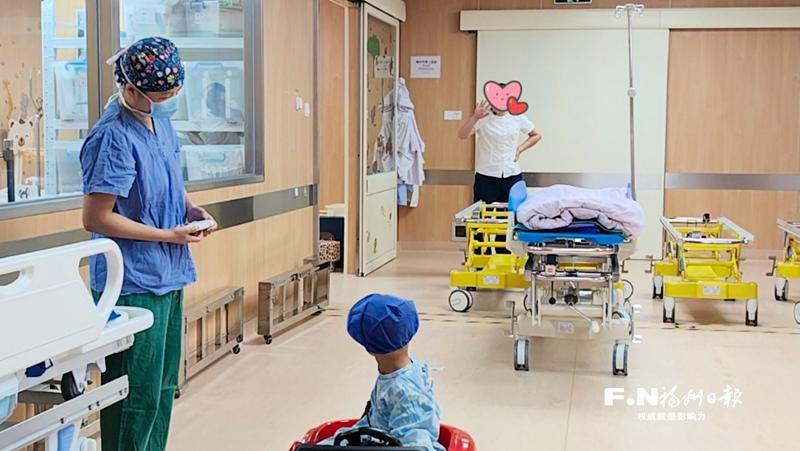 “宝宝别担心,咱们坐着‘小跑车’去‘探险’,一会儿就能见到妈妈啦!”在福州市第二总医院妇幼保健院手术室门口,4岁患儿坐着别致的“敞篷跑车”缓缓驶入,手术全程清醒却无哭闹,术后还开着小汽车“凯旋”。手术室外,家长感慨地说:“真没想到孩子能这么配合,这样的就医体验太暖心了。”