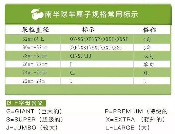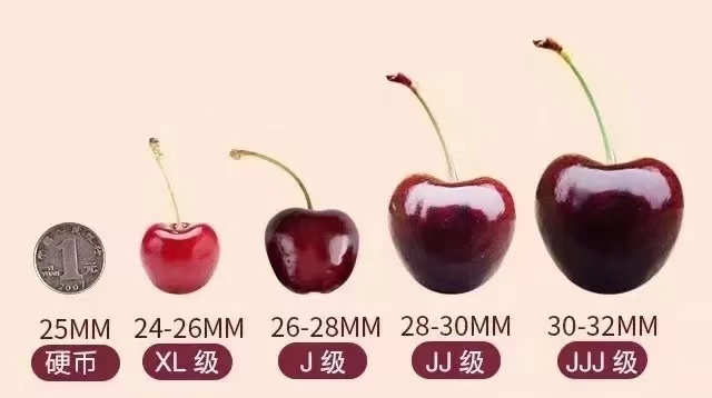 进口的车厘子大致分六个规格,这是分级包装的标准。