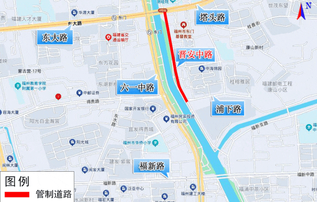 一、从2025年12月13日至施工结束(工期约67天),根据施工进展,视情对晋安中路(北起塔头路口,南至浦下路口)实行临时交通管制,禁止机动车通行。