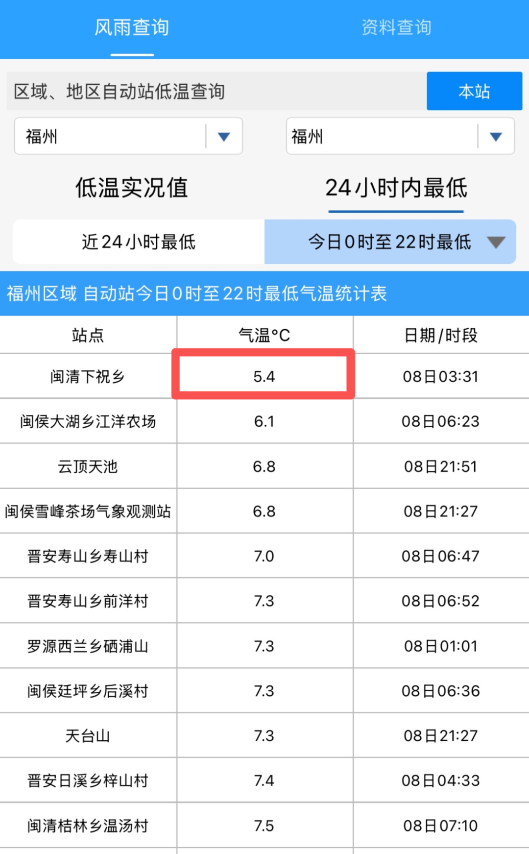 据福州气象最新消息,弱冷空气已于8日中午抵达福州主城区。8日,福州多个气象站点低温实况值跌破10℃。其中,闽清下祝乡最低温仅5.4℃。9日,福州市区气温还会降,要出门的小伙伴注意啦!