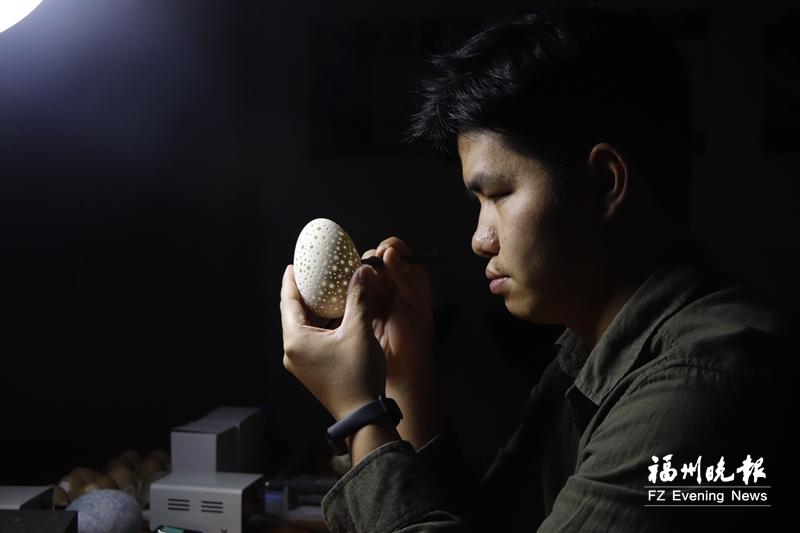 黄杨隆在进行蛋雕创作。