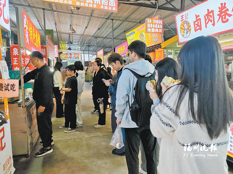 11日,在福建师大旗山校区西门美食街,主动加入义卖的摊主越来越多,闻讯而来的消费者也络绎不绝。