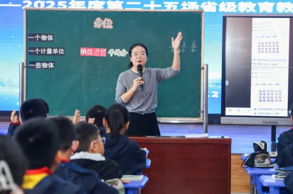钱塘小学副校长潘虹执教的《分数的意义》一课,打破传统教学模式,创新性引入AI动态演示系统。课堂上,她以“为什么不同分法都能表示为四分之三”等核心问题为牵引,通过直观生动的智能动态演示,引导学生跳出机械记忆误区,主动开展深度探究;在趣味数学游戏与数轴建模的逻辑推演中,学生们深刻感受数学学科的逻辑之美与应用魅力。这堂将AI技术与学科本质深度融合的数学课,让抽象知识变得可感可悟,为智慧教学提供了可复制的实践范式。