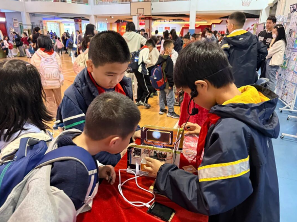 在钱塘小学校内的静态展区,该校多领域智能培育成果集中亮相,涵盖科技、信息、美术等学科。科技展区内,VEX机器人团队展示了可根据语音指令变换队形的编程成果;信息展区最引人注目的是学生研发的“班级人脸识别诚信系统”,以科技手段为校园诚信建设保驾护航;美术展区的“以纸筑梦”系列作品,则实现了科技与艺术的完美融合。