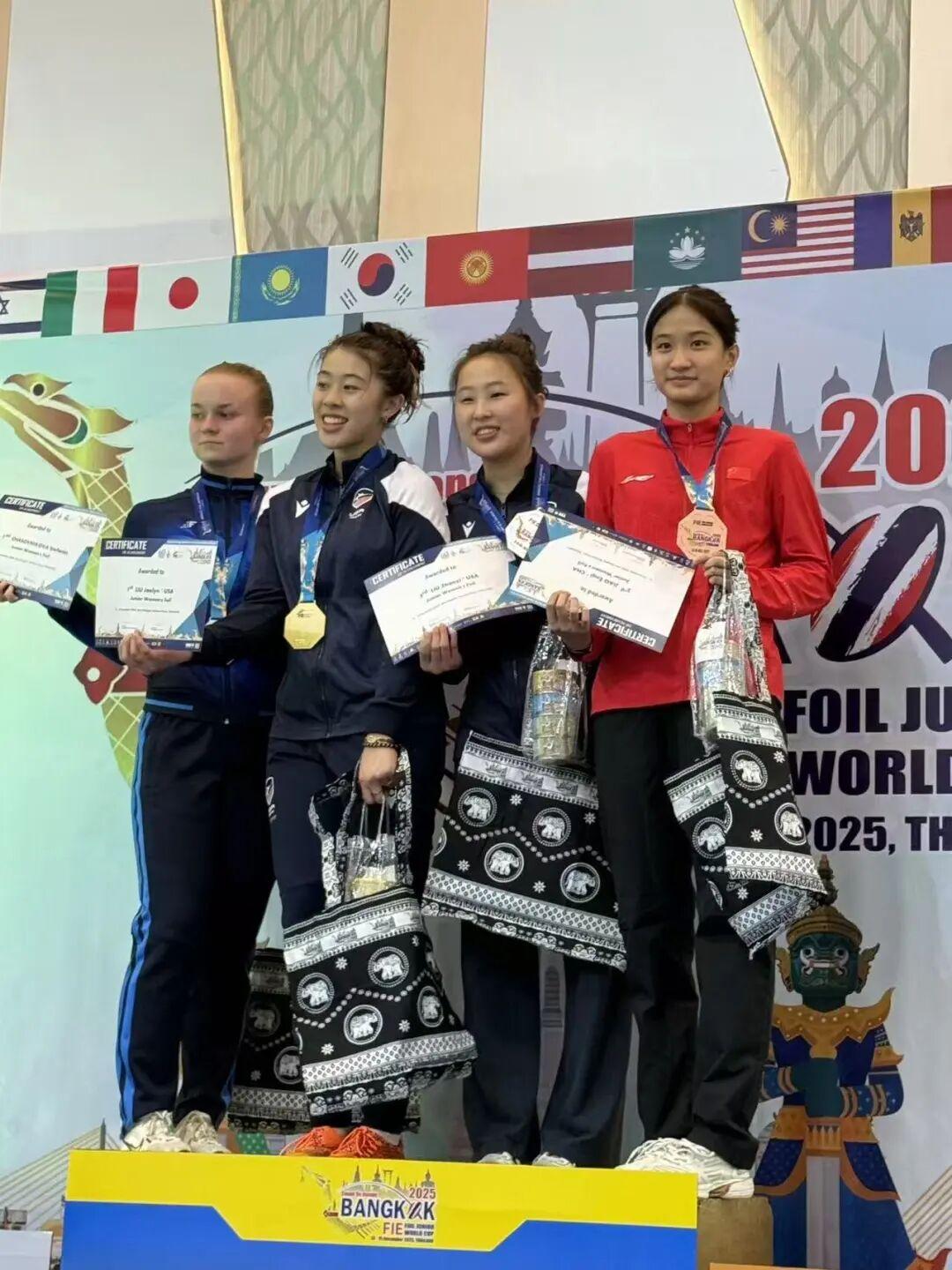在女子花剑个人赛中获得铜牌