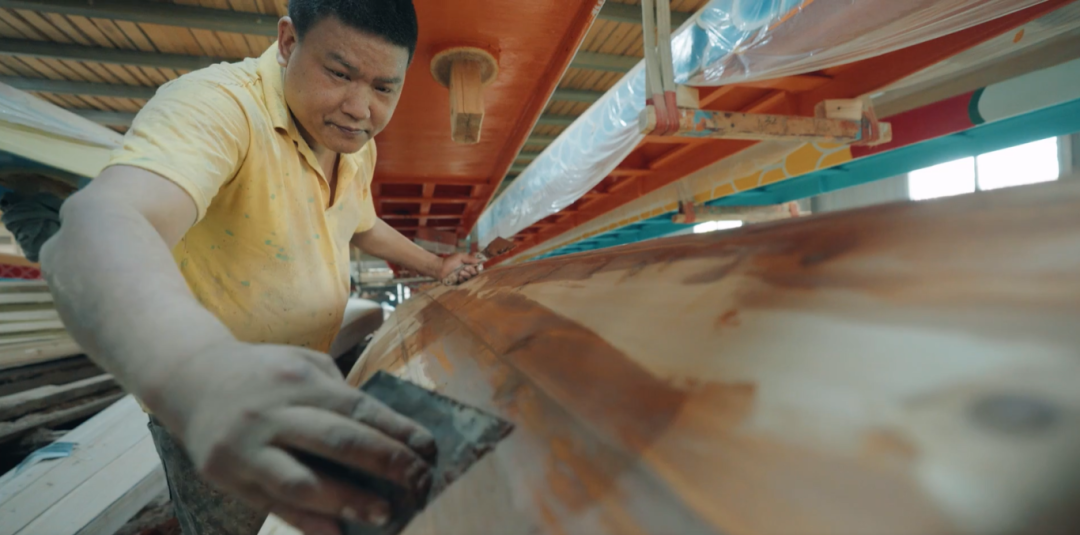 为了让更多年轻人了解龙舟制作,匠人们利用闲暇时间“玩”起了微缩版的龙舟模型制作,发布到新媒体平台,收获了不少粉丝,将这门技艺玩出了“一条龙”产业链。