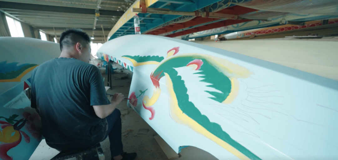 一艘龙舟的加工工艺精细考究,通常需经历做龙骨、钉底板、装鱼梁、抛光、画花、上油漆等工序。从开始制作到完工,一个人需要20多天才能完成。