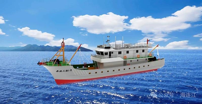32米智能化多功能电动养殖辅助工船效果图。连江县融媒体中心供图