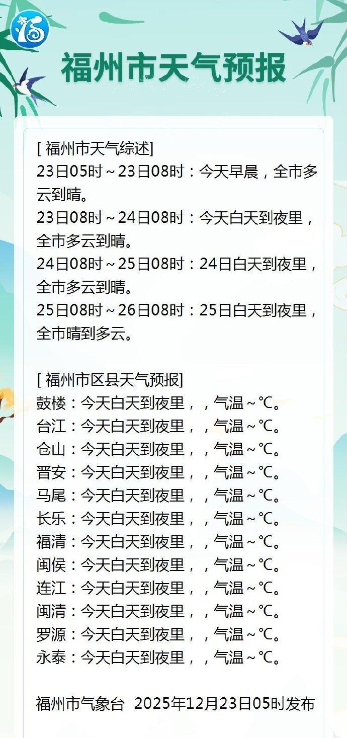 【福州全市天气预报】