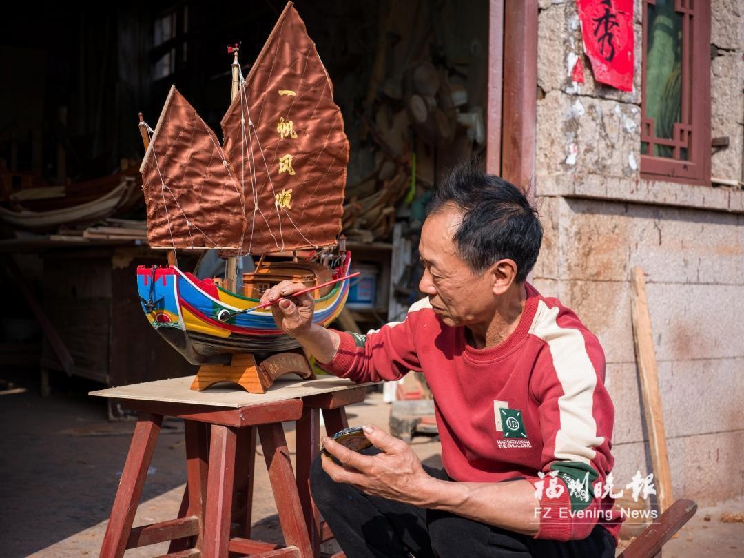 夕阳西下,斜阳将最后的暖意涂抹在船首上的旭日东升图案。那微缩的船体,正载着向海图强的灵魂印记,于老人斑驳的手掌间,讲述着不绝的乡愁。(记者 雷岩平 郑瑞洋 文/摄)