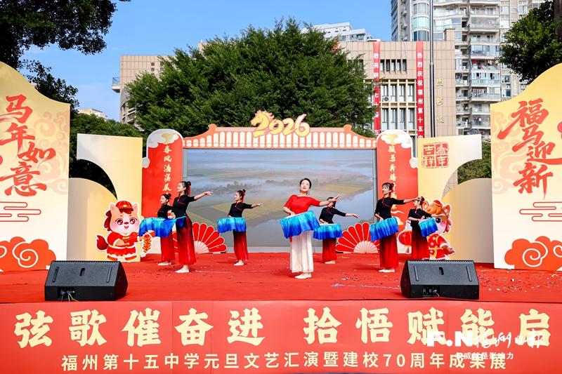 2025年12月31日,福州十五中举行70周年校庆盛典,众多校友重返母校,与在校师生共叙情谊、共贺华诞。校歌《放飞梦想守本真》合唱拉开庆典序幕,朗诵《十五中赋·薪火传》诉说校史,歌伴舞《灯火里的中国》礼赞时代,相声小品逗趣添彩,舞蹈《二十年后再相聚》寄寓期盼……丰富多元的节目将现场气氛推向高潮。