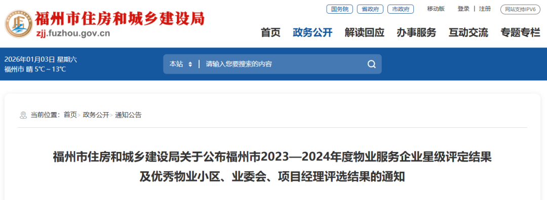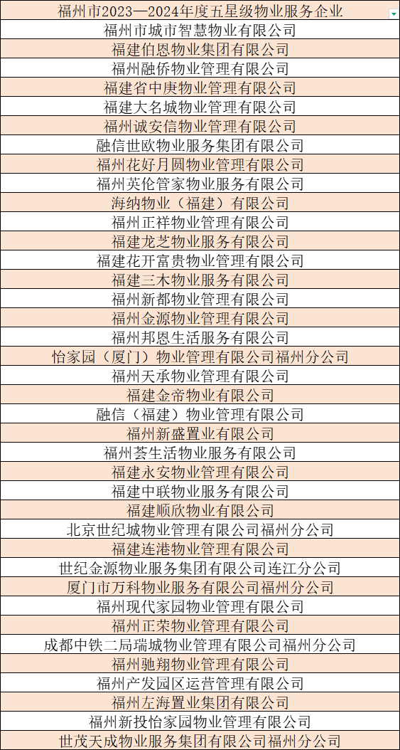 日前,福州市住建局公布2023—2024年度物业服务企业星级评定结果及优秀物业小区、业委会、项目经理推介结果。