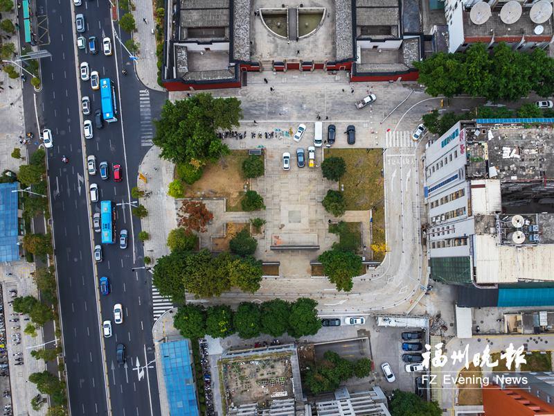 圣庙路全长240米,位于文庙主体与文庙前广场之间,两端分别衔接八一七路与新权路,是片区路网的“咽喉要道”。以往,车流繁忙的圣庙路在一定程度上阻断了福州文庙主体与文庙前广场的联系,参观者也难以顺畅地往来两者之间。如何加强二者的联系,实现“二合一”有机融合?圣庙路的提升改造和新路的开辟,是文庙周边街区综合整治提升工程的重要内容之一。